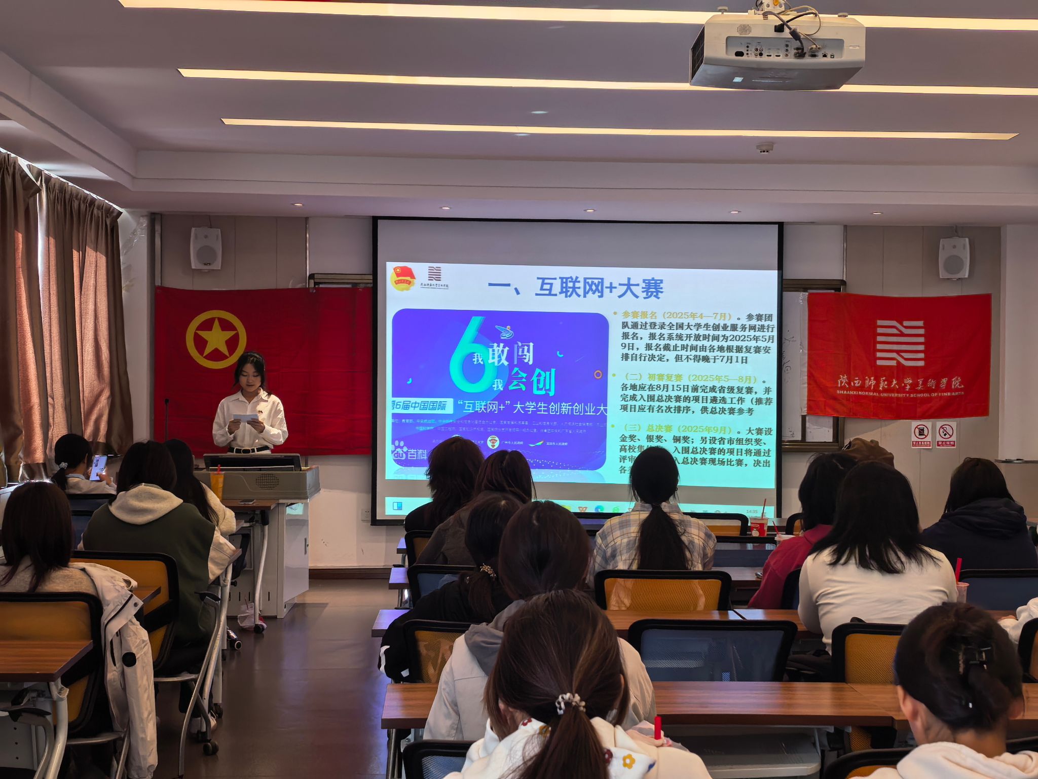 会上,牛梓毓首先围绕“挑战杯”中国大学生创业计划竞赛、“互联网+”大学生创新创业大赛等重点赛事,系统介绍了赛程安排、核心赛道与评审重点,帮助同学们构建起对创新创业竞赛的整体认知。