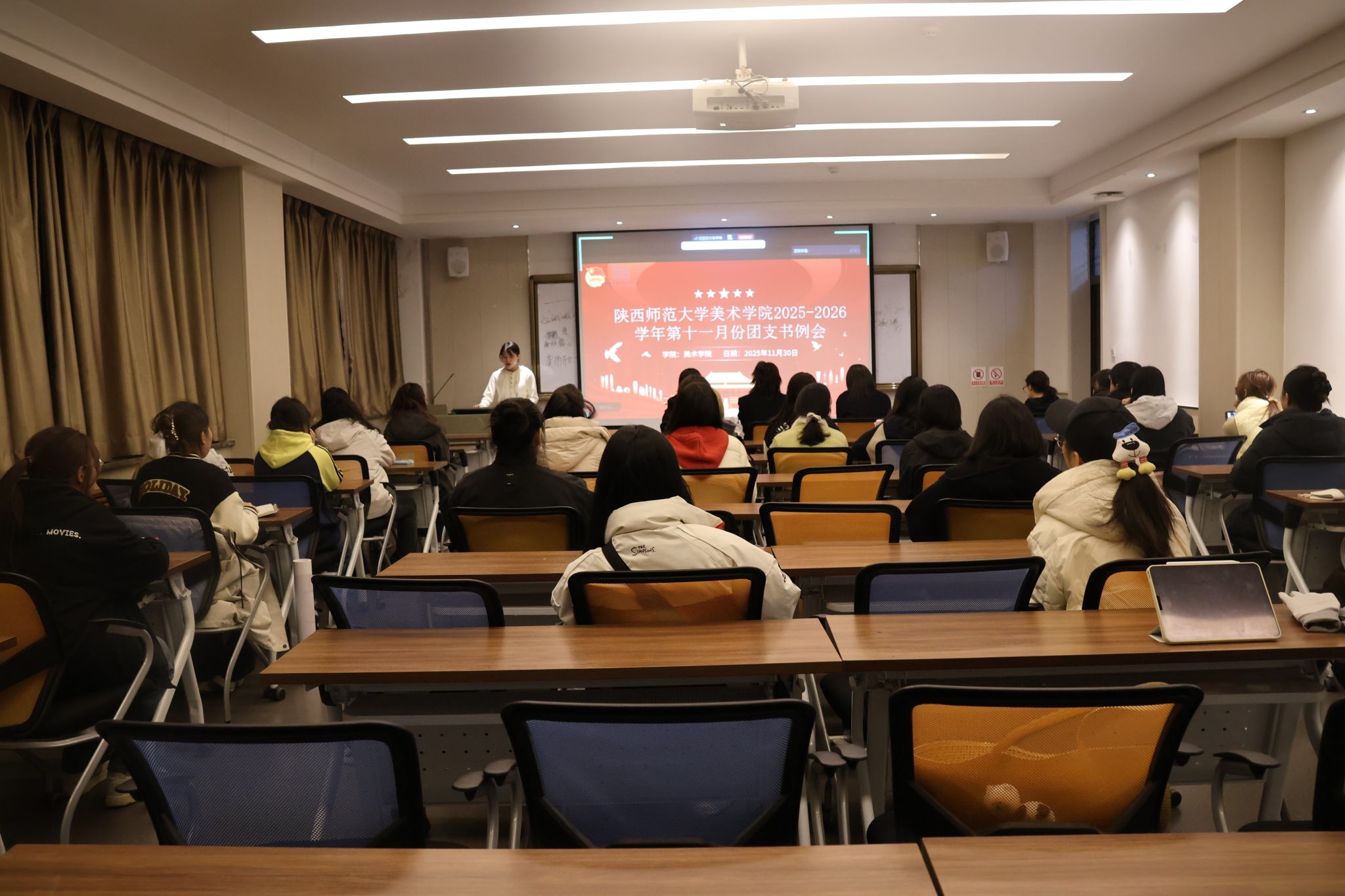 为进一步加强基层团组织建设,2025年11月30日,美术学院团委于六艺楼402教室召开11月团支书工作例会,学院团委书记孙雅媛,团委副书记马骏、唐瑾,全体团支书及团委工作人员参加了会议。会议由学院团委组织部负责人胡雨兰主持。
